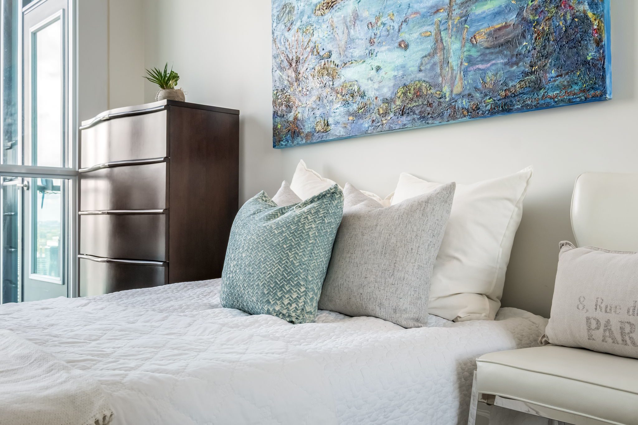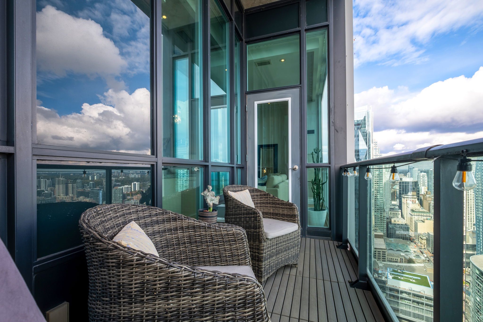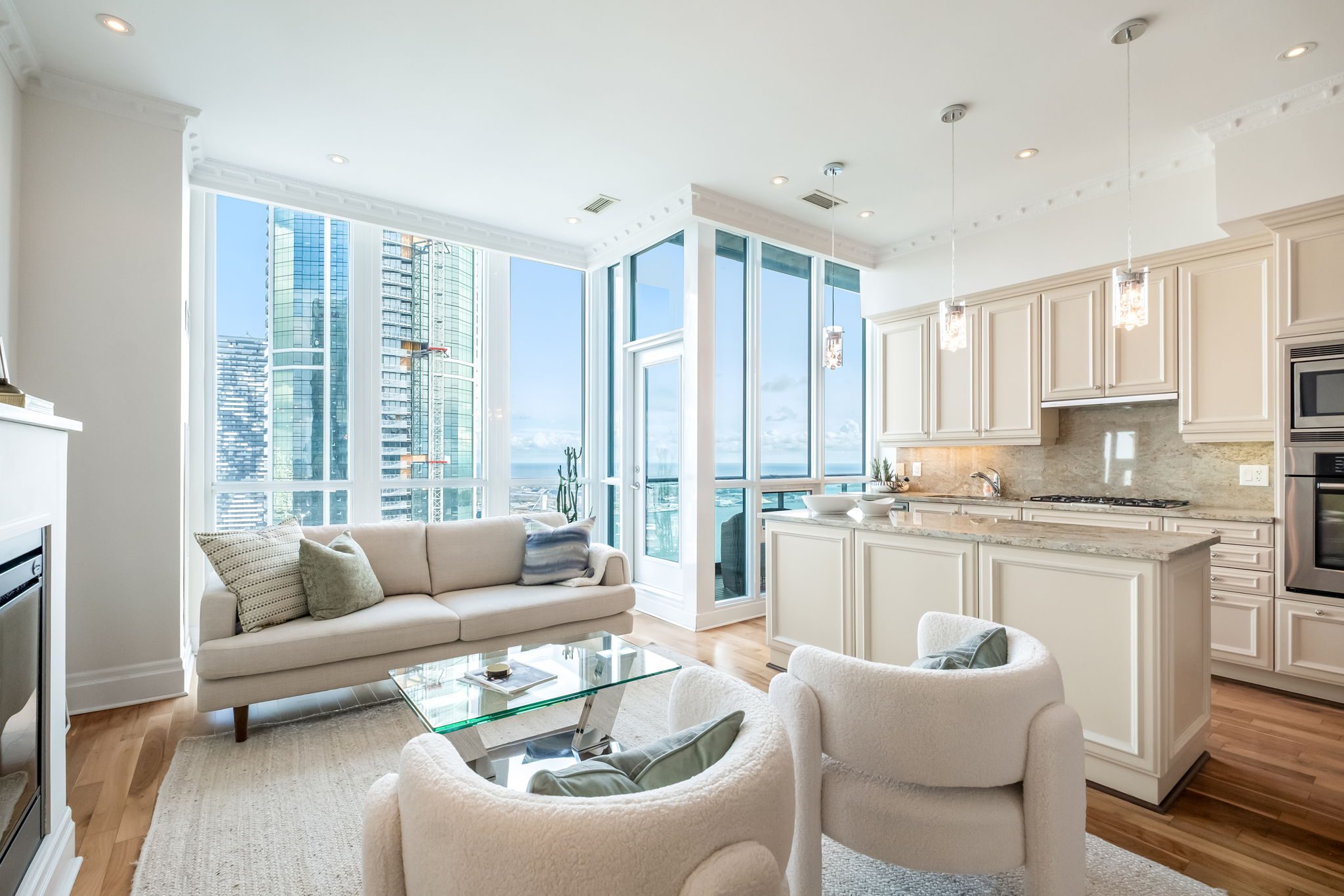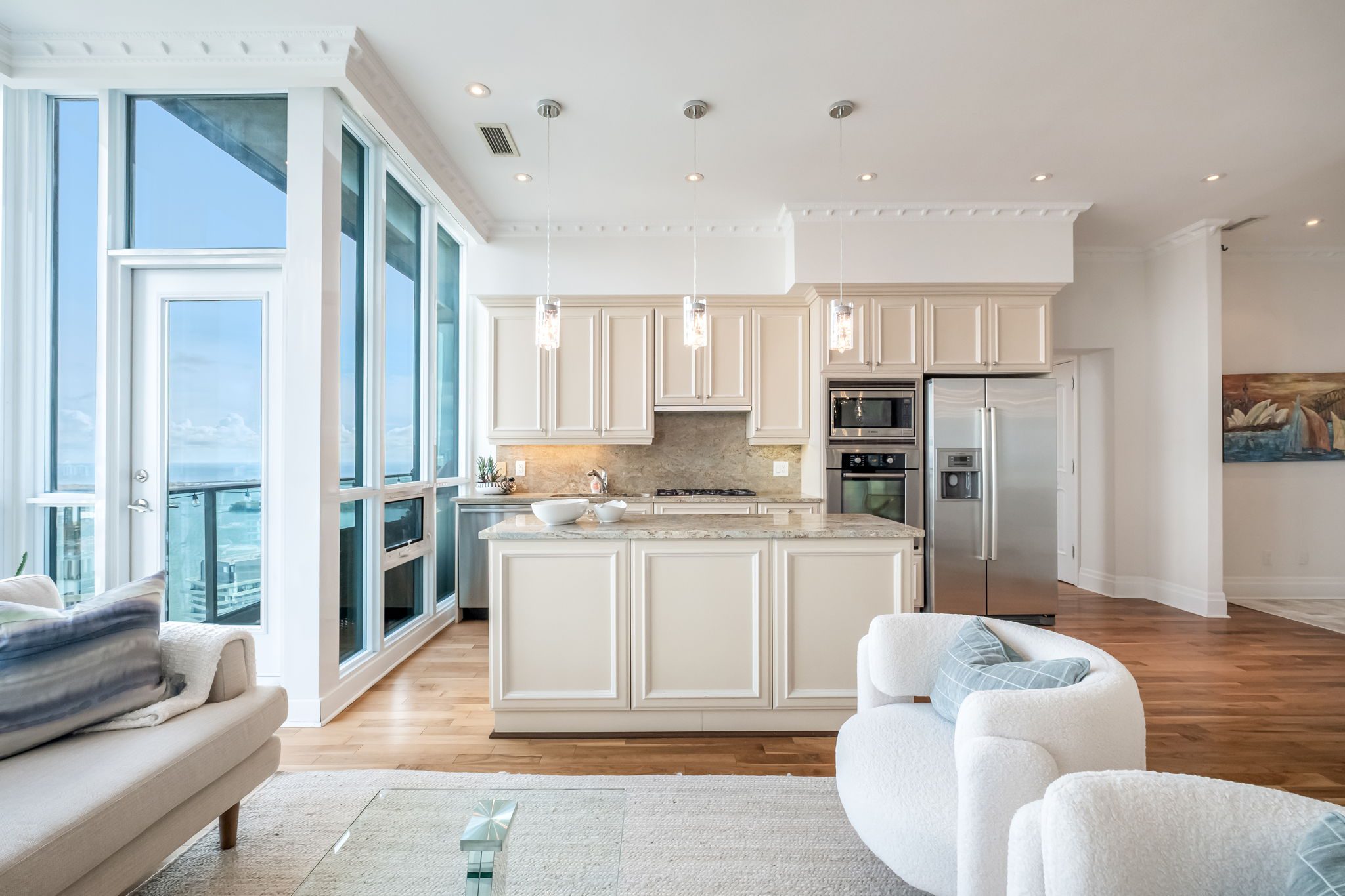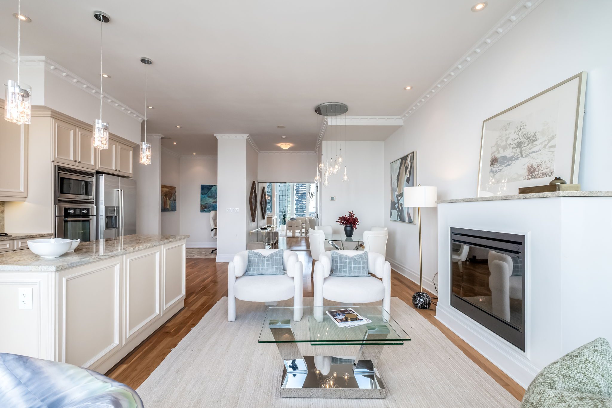 Lower Penthouse With Lake & City ViewsWelcome to this Stunning Lower Penthouse Offering Spectacular Southeast Views of the Lake and City Skyline. With Approximately 1,225 sq. Ft. of Thoughtfully Designed Living Space, This 2 + 1 Bedroom Residence Combines Luxury, Comfort, and Functionality. Featuring an Excellent Open Floor Plan, the Home Boasts a Chef’s Kitchen with a Large Island, Seamlessly Connected to the Spacious Living and Dining Area Highlighted by a Natural Gas Fireplace. Soaring 10 ft Ceilings and Floor-to-ceiling Windows Fill the Space with Natural Light and Provide Breathtaking Panoramic Views. Step Outside to the Oversized Balcony – Perfect for Relaxing or Entertaining.The Generous Primary Suite Includes a Walk-in Closet and a Private Ensuite. A Well – Sized Second Bedroom and Versatile Den Offer Flexibility for a Home Office or Guest Room. Additional Conveniences Include One Parking Space and Two Lockers, With a Possible Option to Rent a Second Parking Spot. Located Just Steps to the Lake, Financial District, and All Downtown Amenities, this Residence Combines Convenience With Upscale Urban Living.
