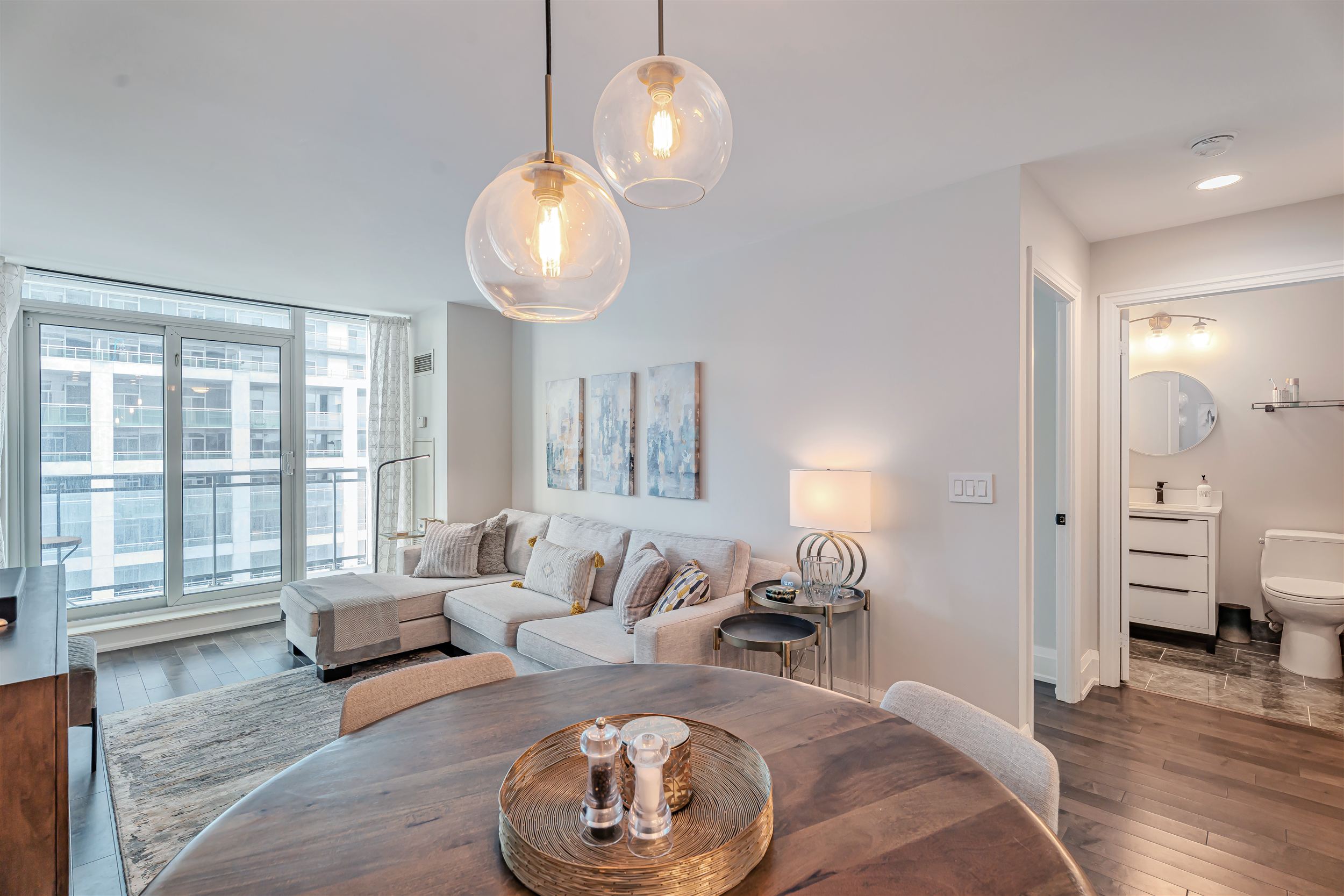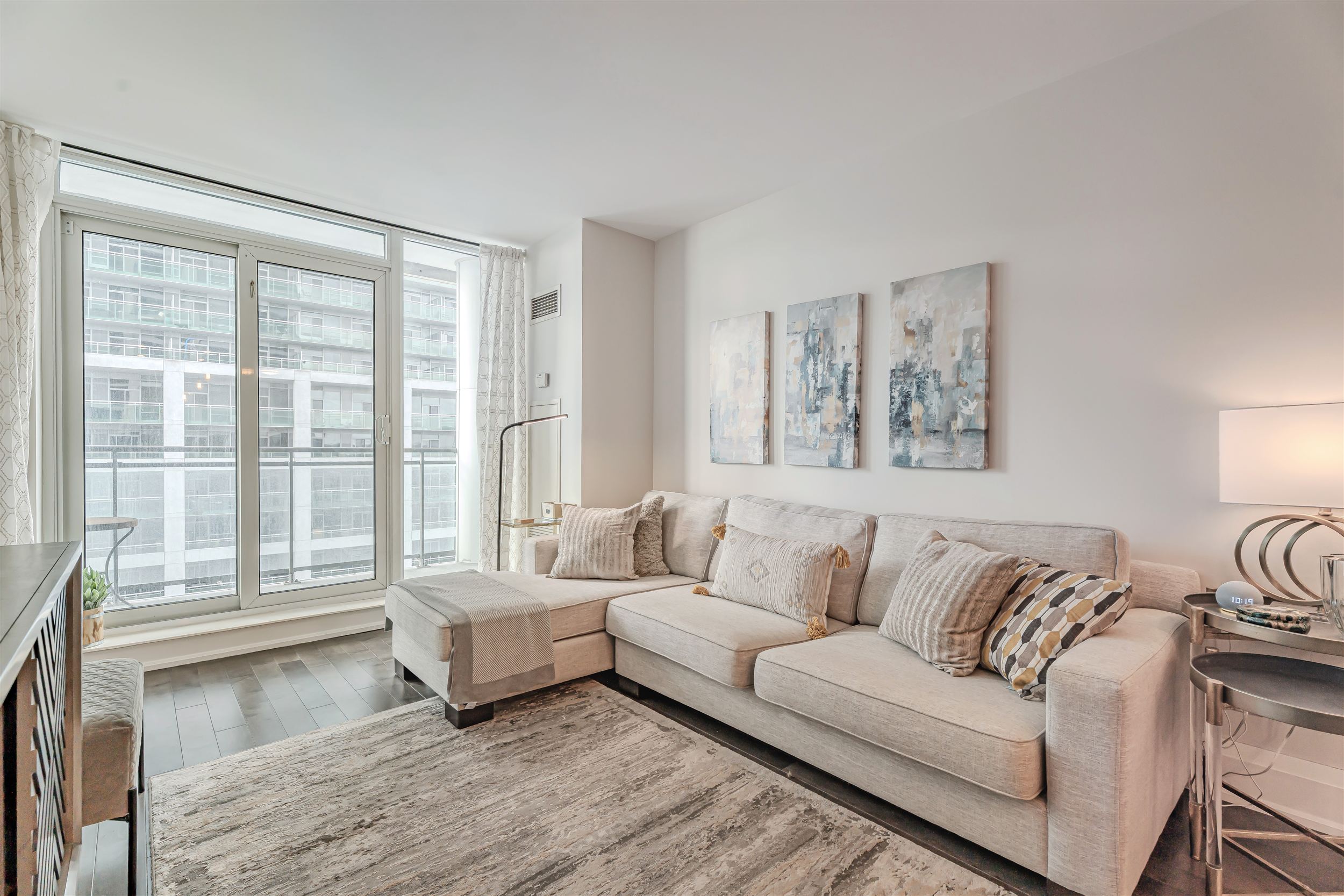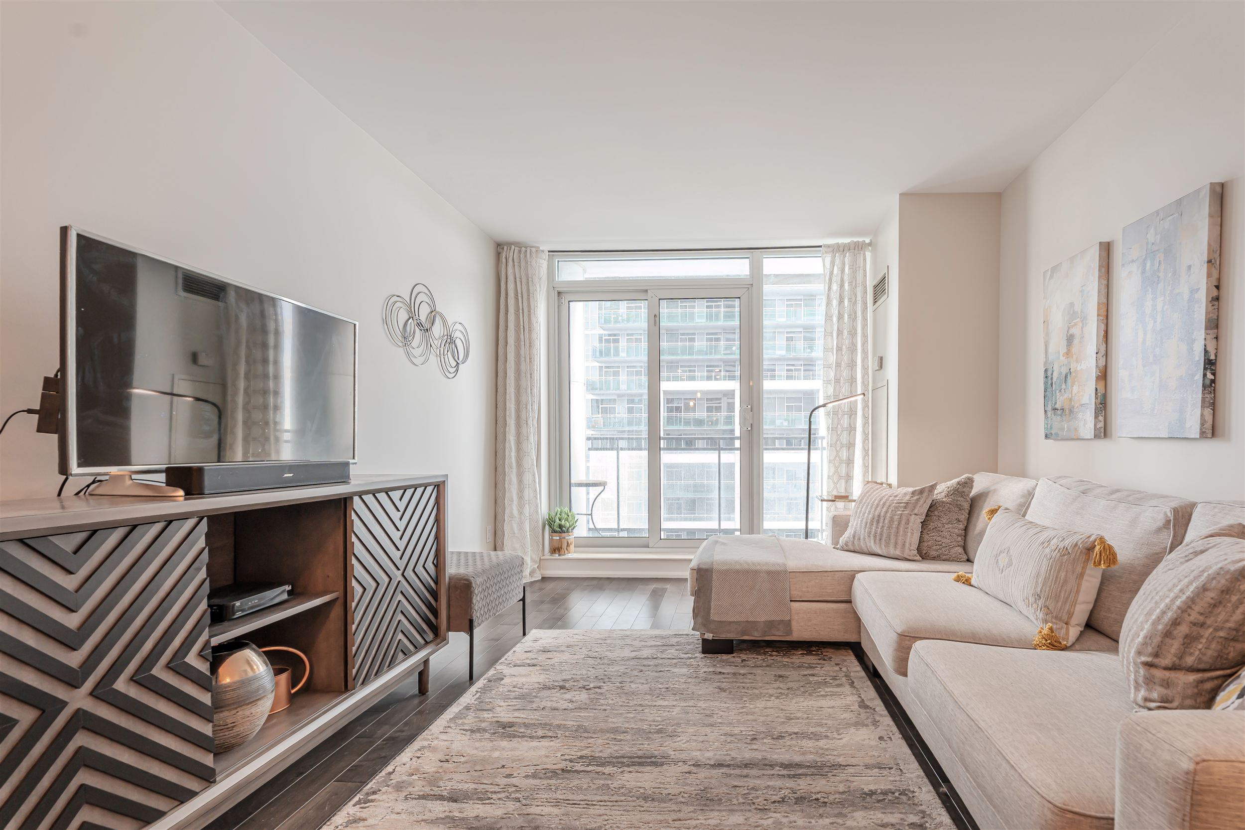 Meticulously Maintained and Filled With Natural Light, This Bright 592SQFT 1- Bedroom Suite Showcases Beautiful Lake Views and a Well-Sized Private Balcony. Enjoy Seamless Indoor-Outdoor Living With Walkouts to the Balcony From Both the Living Room and the Primary Bedroom.The Open-Concept Kitchen Features a Breakfast Bar and Stainless Steel Appliances, Perfect for Entertaining. Renovated Bathroom Adds a Modern Touch. Includes One Parking Space and One Locker. Experience First-Class Amenities Including 24-Hour Concierge and Security, Fully Equipped Gym, Indoor Pool, Party Room, and Visitor Parking. Ideally Located for Vibrant, Modern Waterfront Living.